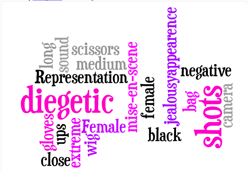 The mise-en-scene used for the main character was a wig, gloves, bag, scissors. The camera work used was extreme close-up of her eyes, medium shots of the side of her face, long shots of her looking through the whole in the wall. Close-ups were used when the two characters that are used in the beginning turn around and see their attacker. The physical attack that we see we do not see her face but we see close ups of the attack. Sound used was diegetic (cars driving by, scream) non-diegetic (whoosh air, impact crashes, walking, scissors. Music- drone suspense, drone ethereal and drone dark and scary).